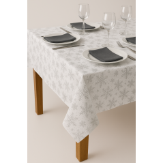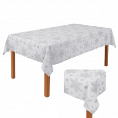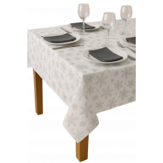 OBRUS BIAŁY ŚWIĄTECZNY PLAMOODPORNY SREBRNE PŁATKI GWIAZDKI OZDOBNY 140x230