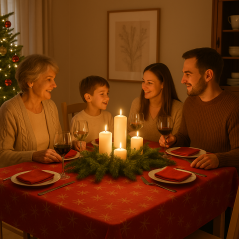 OBRUS ŚWIĄTECZNY CZERWONY BORDO PLAMOODPORNY ZŁOTE GWIAZDKI OZDOBNY 140x230