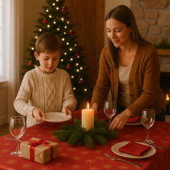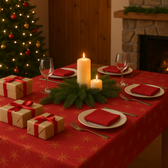 copy of OBRUS ŚWIĄTECZNY CZERWONY BORDO PLAMOODPORNY ZŁOTE GWIAZDKI OZDOBNY 140x230