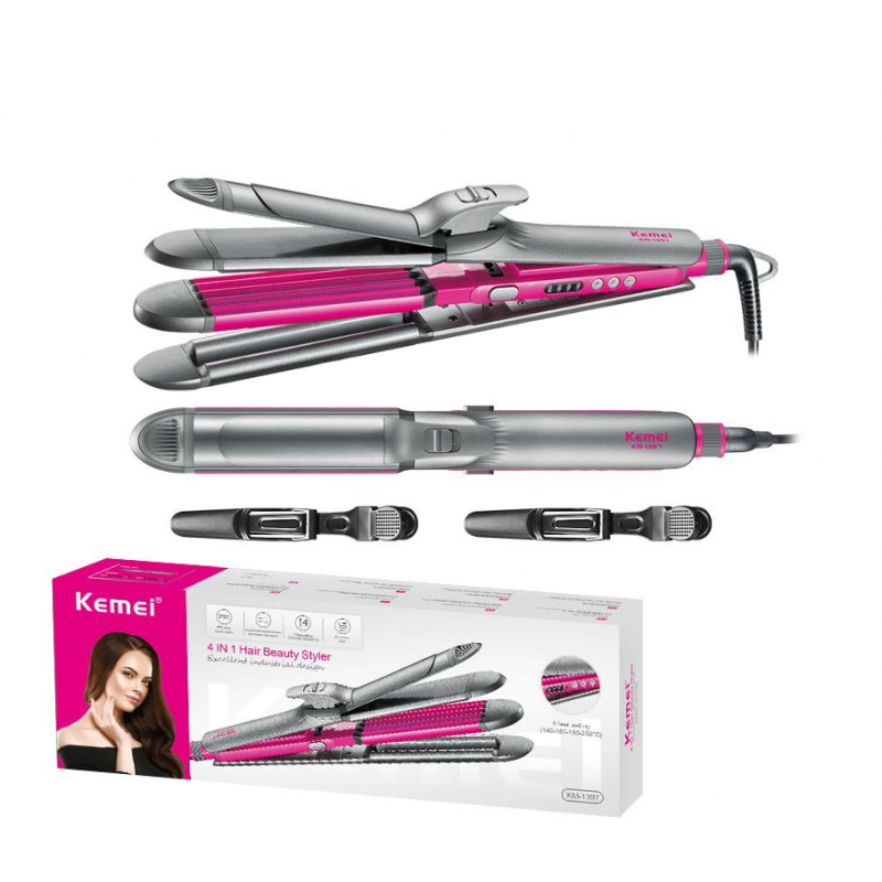 Poznaj Kemei KM-1397 – wielofunkcyjne urządzenie do stylizacji włosów 4w1, które łączy w sobie prostownicę, lokówkę, karbownicę i falownicę. To idealne rozwiązanie dla kobiet, które cenią sobie szybkie, bezpieczne i efektowne układanie włosów w domowym zaciszu. Dzięki nowoczesnej technologii i ergonomicznej budowie, możesz stworzyć każdą fryzurę – od gładko prostych pasm po romantyczne loki i efektowne fale.