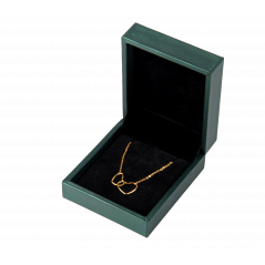Każda bransoletka zapakowana jest w eleganckie pudełko prezentowe w kolorze butelkowej zieleni, z czarnym, miękkim wnętrzem, które podkreśla luksusowy charakter biżuterii.