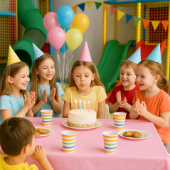Stwórz radosną, kolorową i bezproblemową w sprzątaniu oprawę każdego dziecięcego przyjęcia! Nasze jednorazowe* obrusy z wytrzymałego materiału PE to szybki sposób na udekorowanie stołu oraz zabezpieczenie go przed zabrudzeniami. Dostępne są w dwóch popularnych kolorach: niebieskim i różowym, dzięki czemu łatwo dopasujesz je do motywu przewodniego urodzin, baby shower, kinderbalu czy imprezy tematycznej.