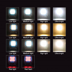 Ciepłe żółte światło: niski, średni, mocny, ultra mocny.