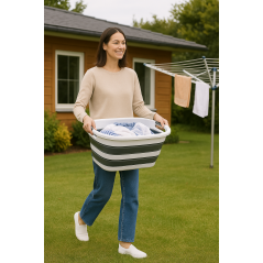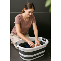 ✔ Do prania i bielizny – świetnie sprawdzi się jako kosz na brudne ubrania, pojemnik na świeże pranie lub wanienka do ręcznego prania delikatnych tkanin.