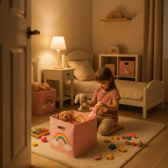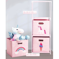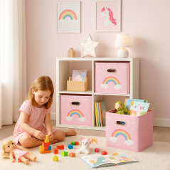 kosz na zabawki, pojemnik składany 30x30x30, pudełko na zabawki ikea, organizer dla dzieci, pojemnik na klocki, kosz do pokoju dziewczynki, różowy kosz dziecięcy, pojemnik dekoracyjny, kosz do regału ikea, składane pudełko na zabawki, różowy organizer tęcza