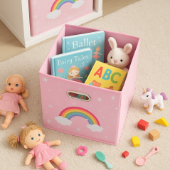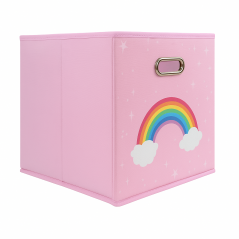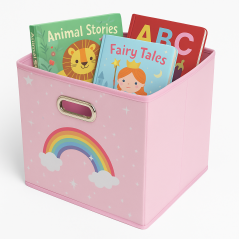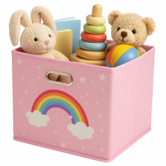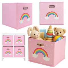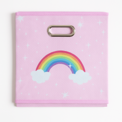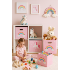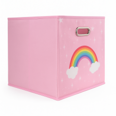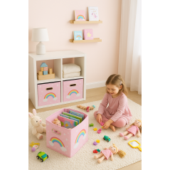 Składany pojemnik na zabawki 30x30x30 cm – różowy z motywem tęczy