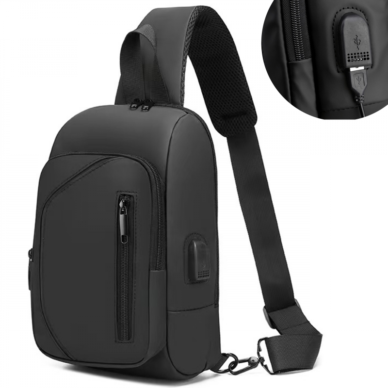 Torba posiada zewnętrzne gniazdo USB, umożliwiające wygodne ładowanie telefonu w trakcie ruchu. Wystarczy podłączyć powerbank od środka – telefon można ładować bez otwierania torby.